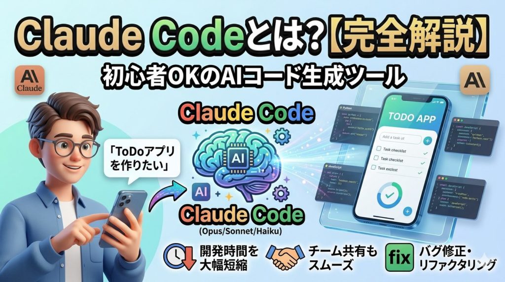 Claude Codeとは何かを初心者向けに解説。できること・使い方・料金・メリット・デメリットまで完全網羅。AIでコード生成したい方必見。 近年、AIを活用したプログラミング開発が急速に普及しています。その中でも注目を集めているのが「Claude Code」です... -