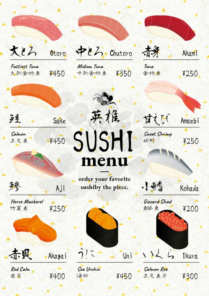 例:飲食店の販促チラシに「和風の背景+料理アイコン」を使用