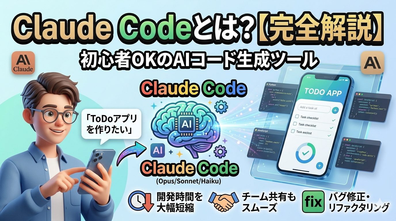 Claude Codeとは何かを初心者向けに解説。できること・使い方・料金・メリット・デメリットまで完全網羅。AIでコード生成したい方必見。