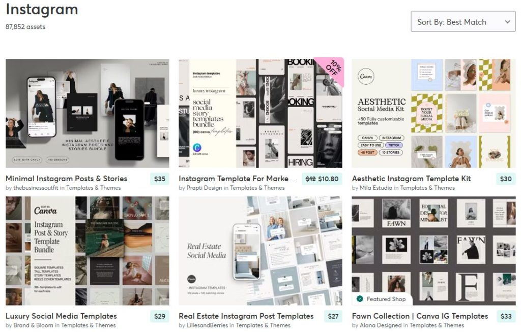 Instagramの投稿やストーリー用のテンプレートも豊富にそろっています。