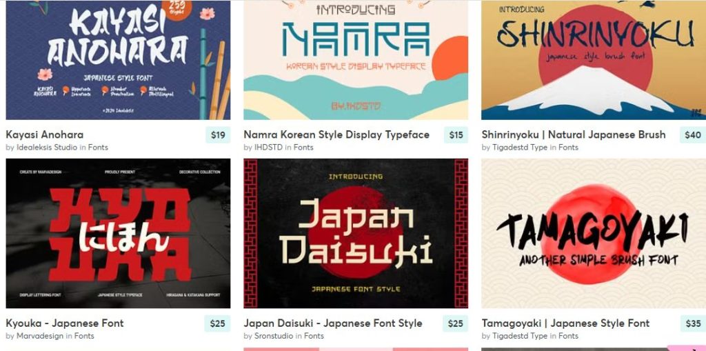 Creative Marketには英語フォントが多いですが、中には日本語対応のフォントや、漢字・ひらがな・カタカナに対応したものも増えてきています。