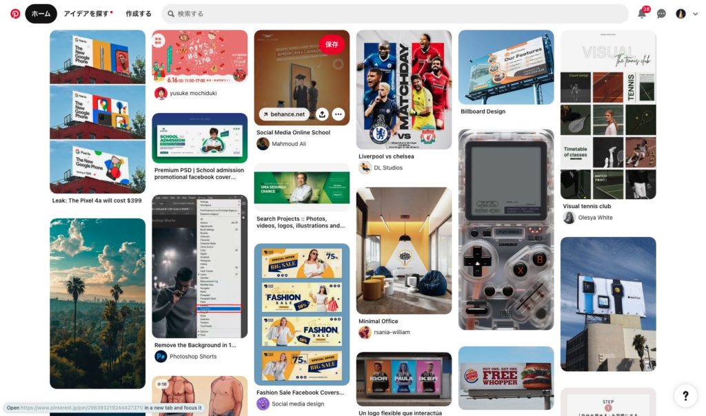 Pinterestは、ビジュアルブックマークサイトとして多くのデザイナーに利用されています。