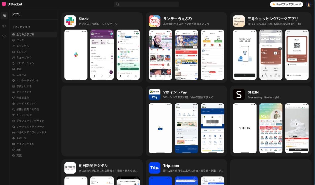 UIpocketは、アプリの画面を画面毎にまとめてくれている非常に便利なサイトになっています、デザイナーにとって非常に便利なリソースとなっています