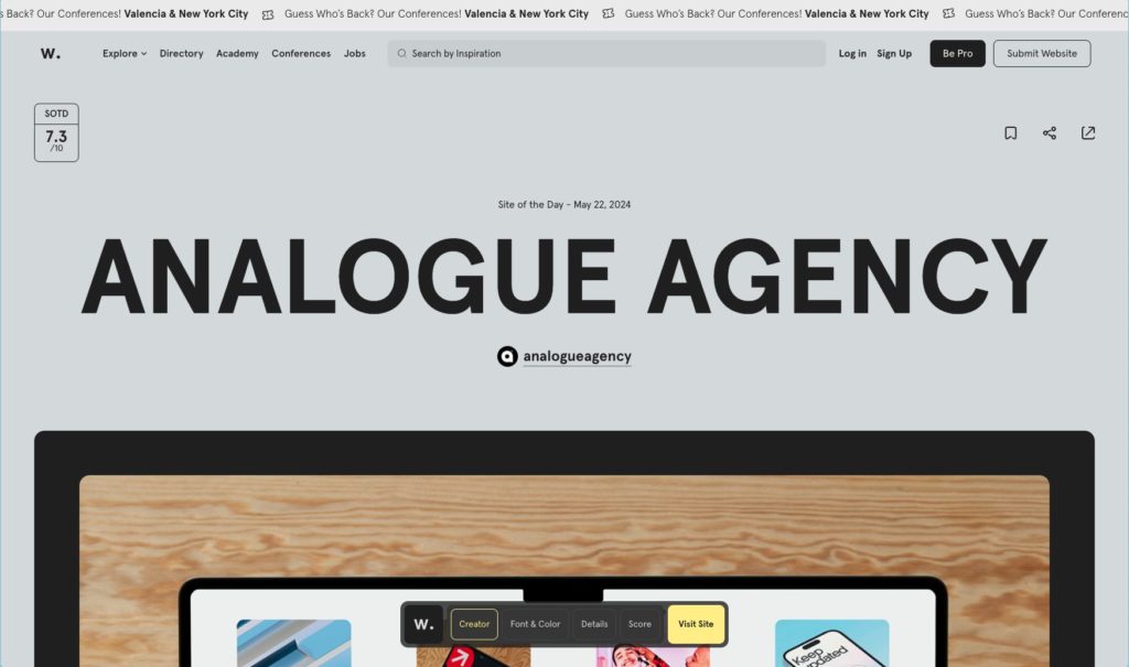 Awwwardsは、優れたウェブデザインを評価するデザインサイトです。