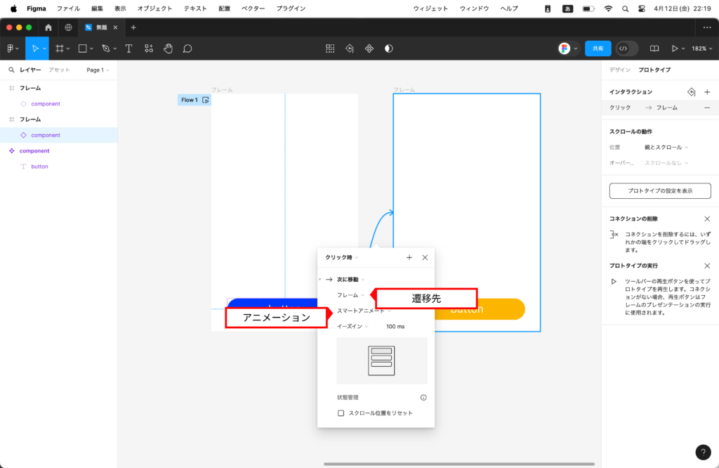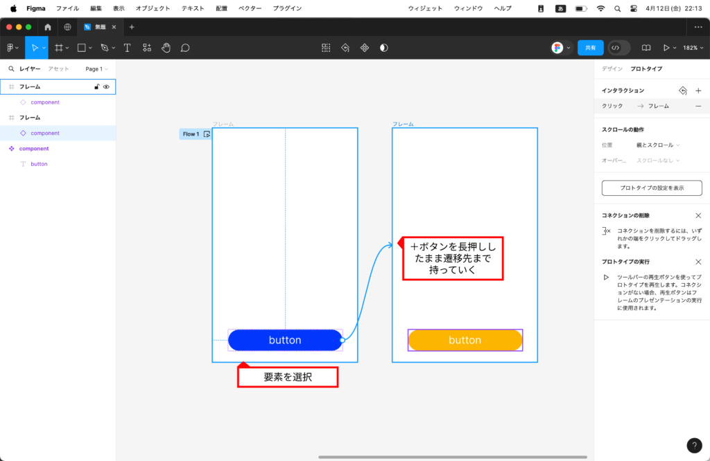 Figmaでは、ボタンやリンクなどのインタラクティブな要素を追加することができます。