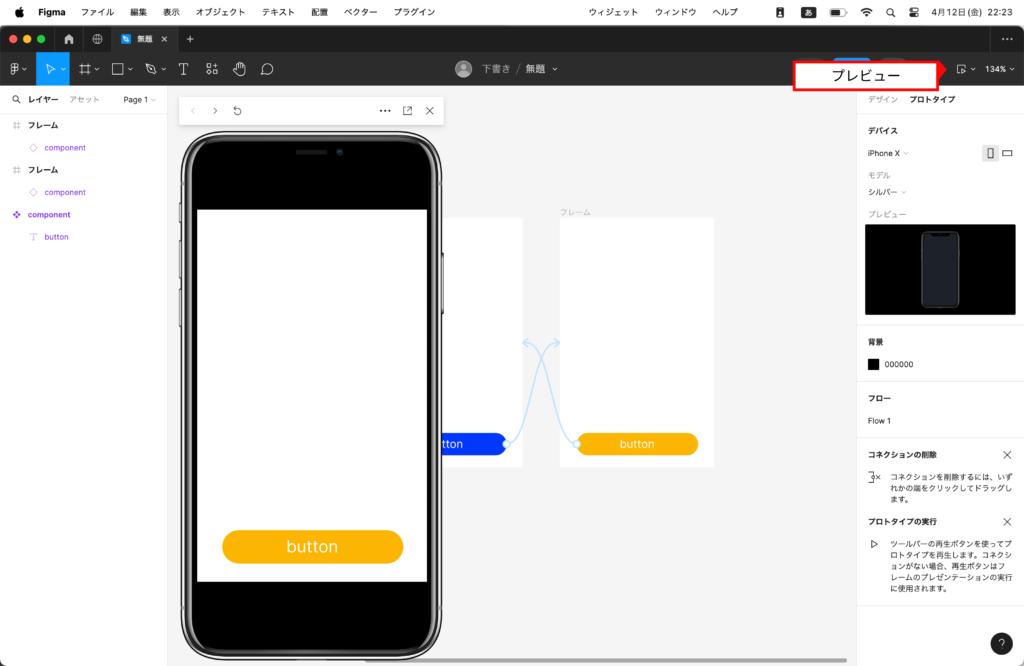 プロトタイプが完成したら、Figmaのプレビュー機能を使って動作を確認しましょう。